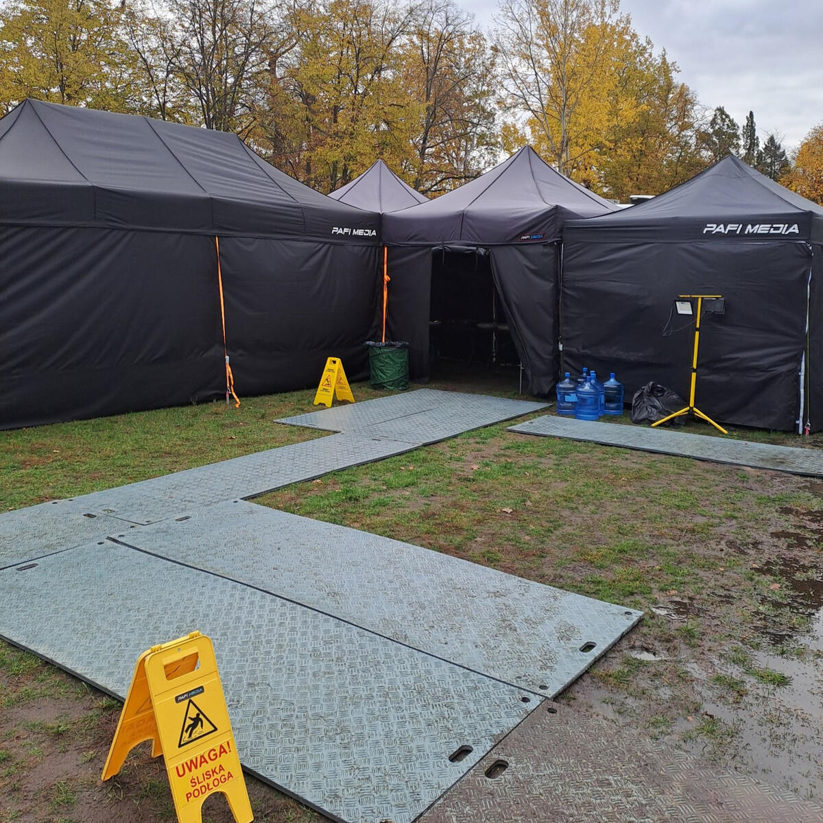 W wyposażeniu mamy profesjonalne namioty, garderoby, oświetlane stanowiska charakteryzatorskie, wentylatory, dymiarki oraz komplet zabezpieczeń terenowych.